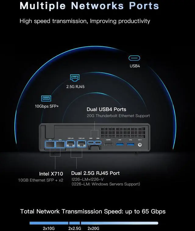 Super Fast Network Speed: It comes with two 10G SFP+ ports, each supporting a 10 Gbps transfer rate and link aggregation, which is ideal for users demanding ultra-fast wired network connections.