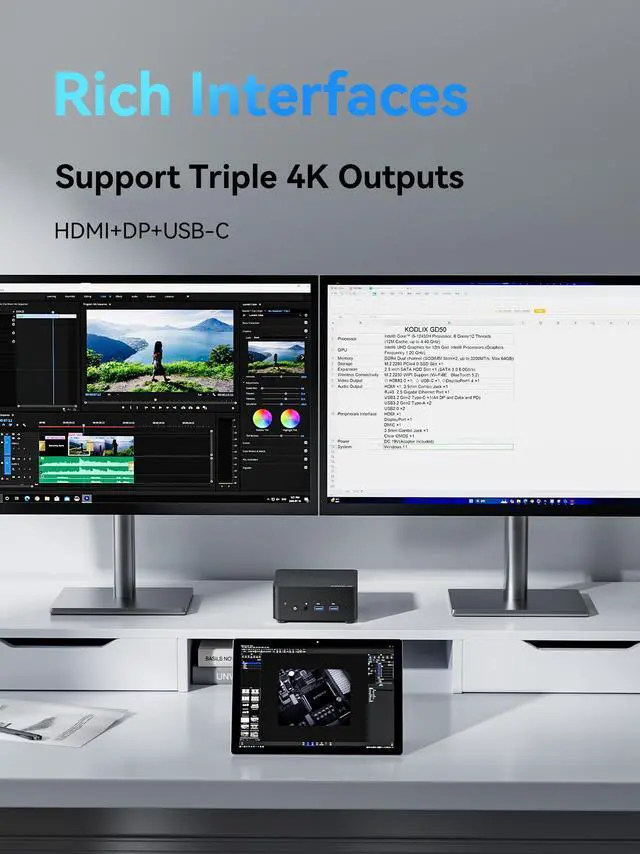 • 4K Triple Screen Output: Experience stunning visuals with support for up to three 4K displays, making it perfect for productivity tasks and multimedia consumption.