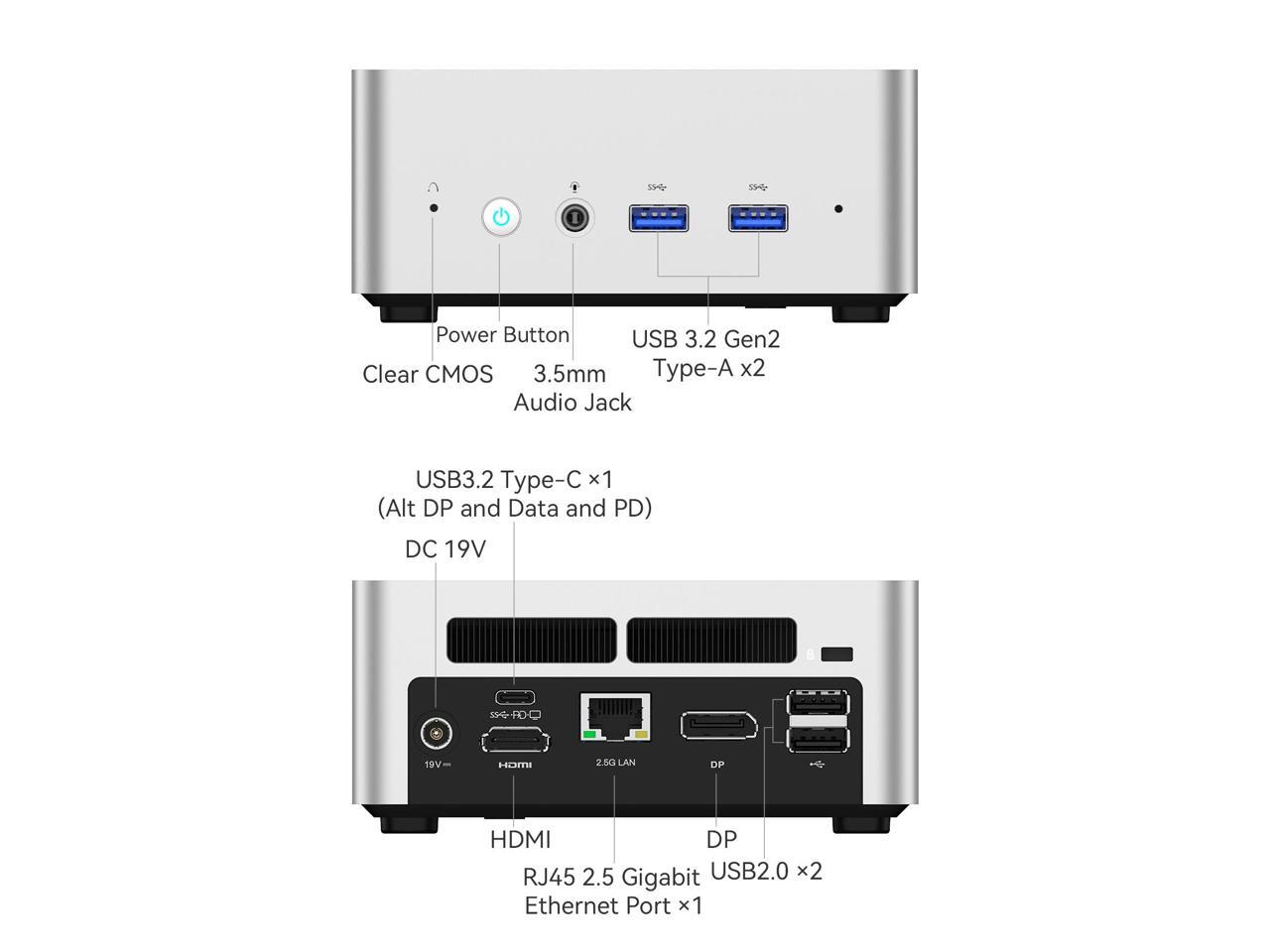 Multiple Connections: It comes with 1x 2.5G RJ45 Port, 1x HDMI, 1x USB3.2 Type-C, 1x DisplayPort, 2xUSB3.2, 2xUSB 2.0, 1x Audio Jack, 1x DMIC Port. With the included VESA Mount, it can set up an all-in-one computer and free up the desk space.
