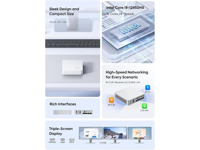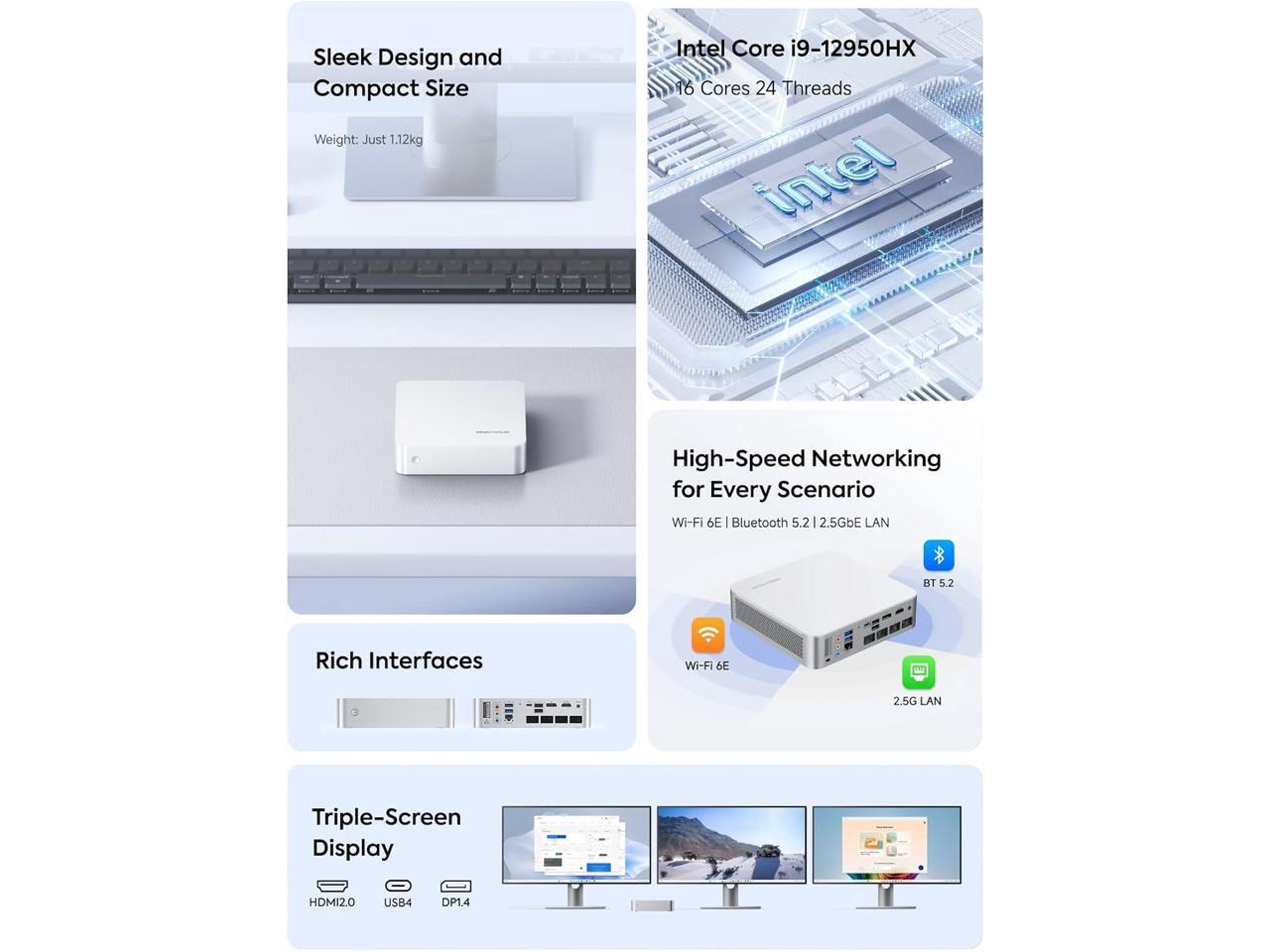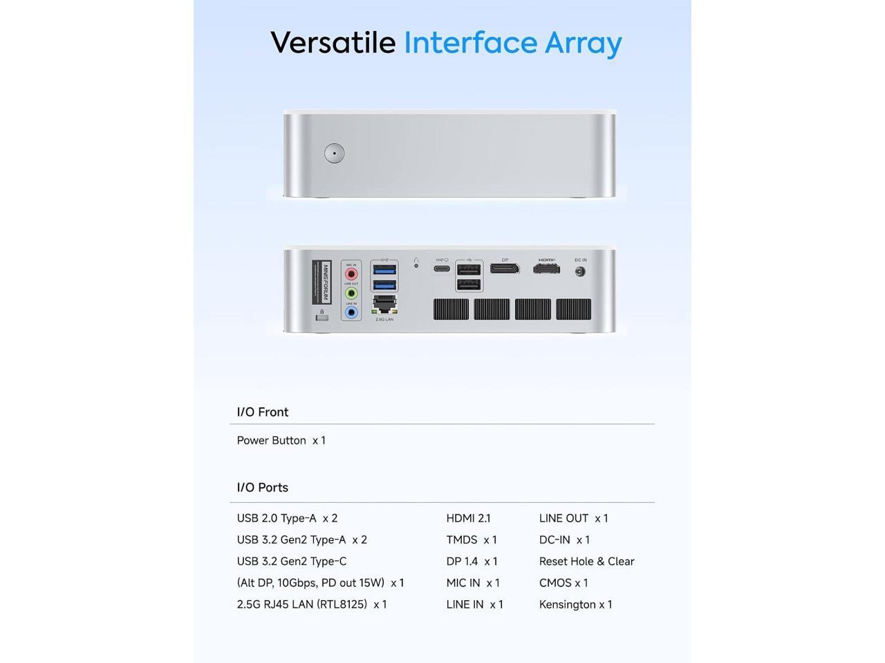 - Equipped with a 2.5G Ethernet port, this mini PC guarantees reliable and high-speed network connectivity, reducing latency and optimizing online activities.