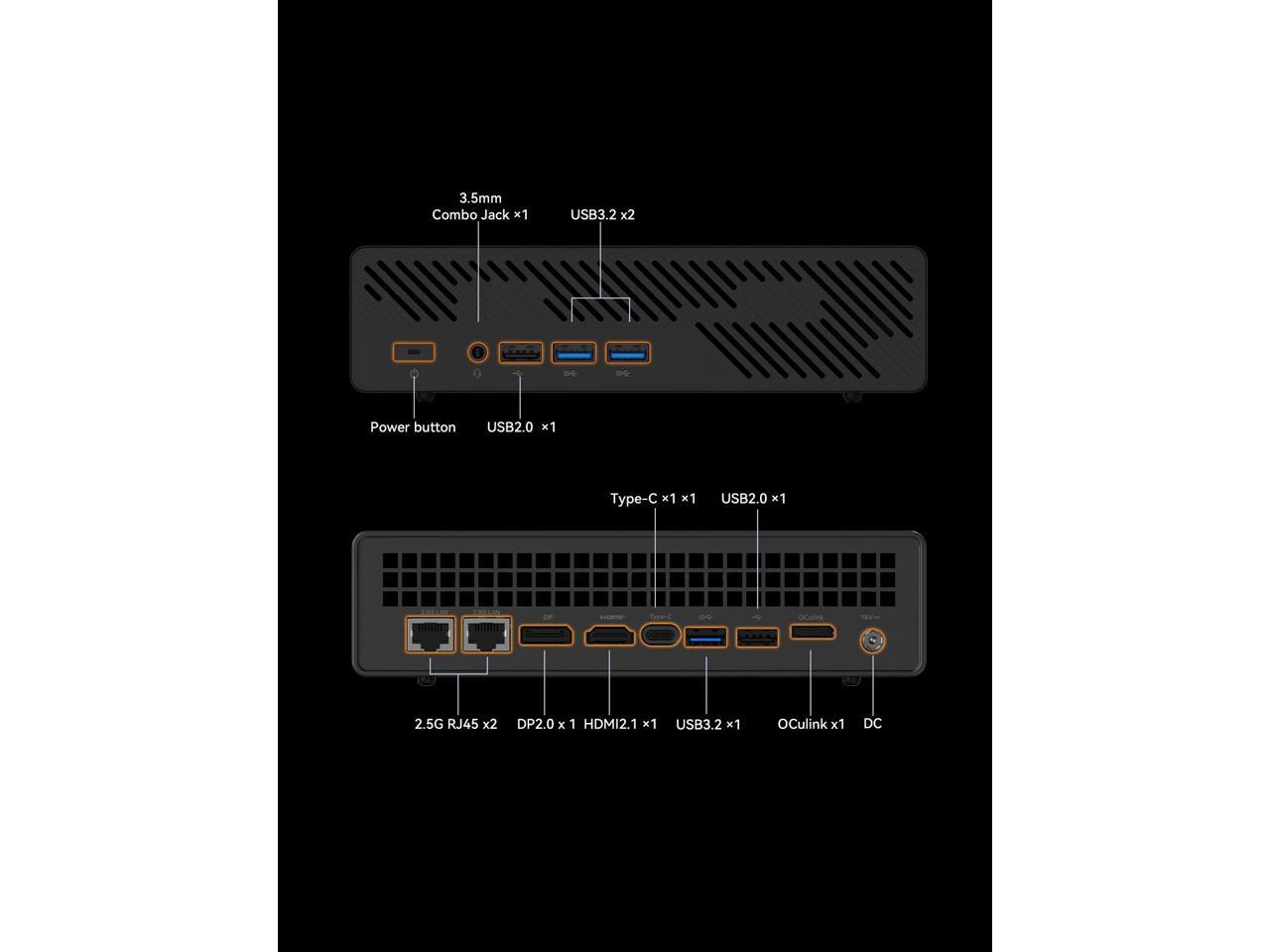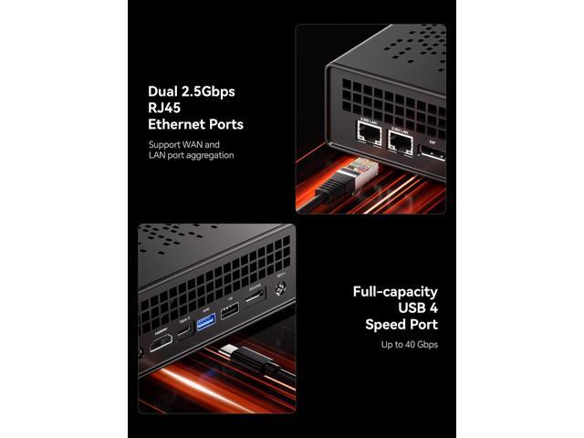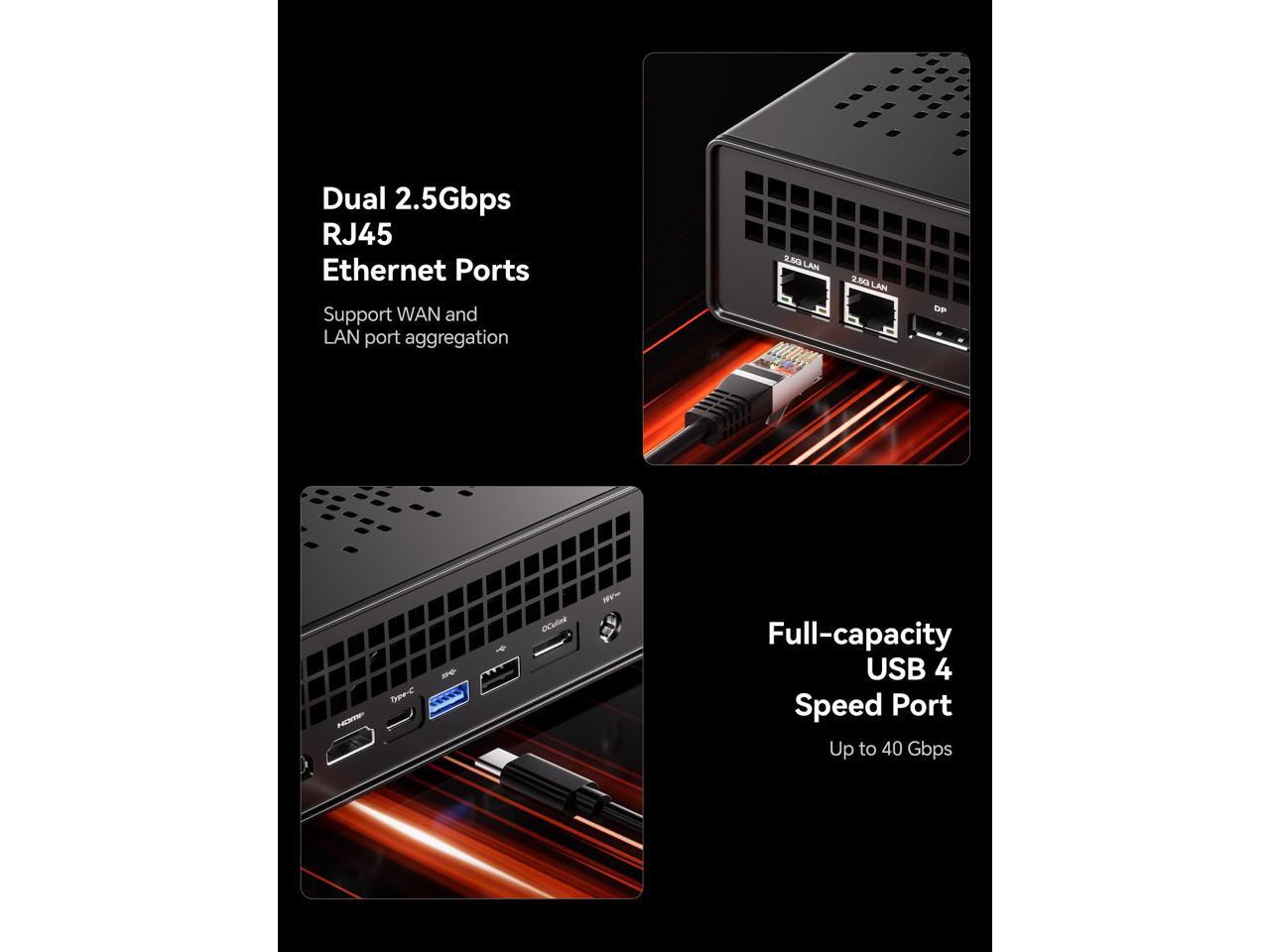 - 2.5G Lan Ports: This Mini workstation comes with two 2.5G RJ45 ports. Its suitable for connecting to high-speed home and office networks and other scenarios requiring rapid network transfers.