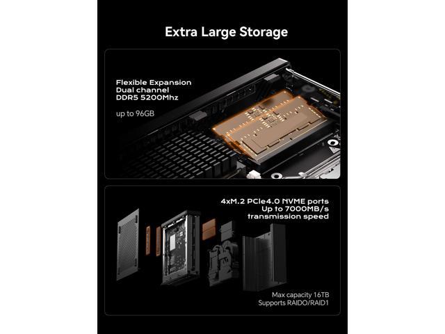- Flexible Expandability: It equipped with two DDR5-5200 slots + M.2 2280 PCIe4.0 SSD slot. This SSD slot compatible with RAID0 and RAID1. With three more M.2 NVMe SSD Slots, you can store important files easily.