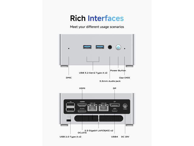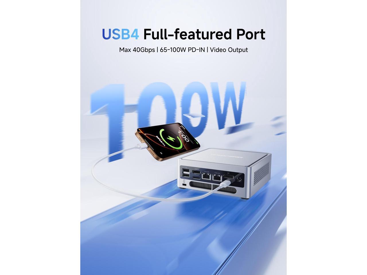 - Triple Video Output Capability: Expand your visual horizons with the NAB8 Plus Mini PC, which boasts 1x HDMI2.1 TMDS(4K@60Hz), 1x2x DP1.4 (4K@120Hz) and 1x USB4 outputs.