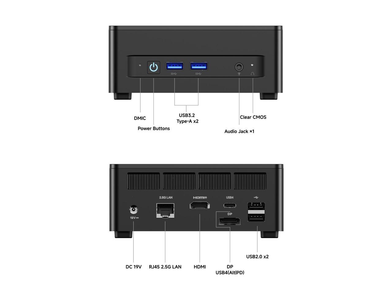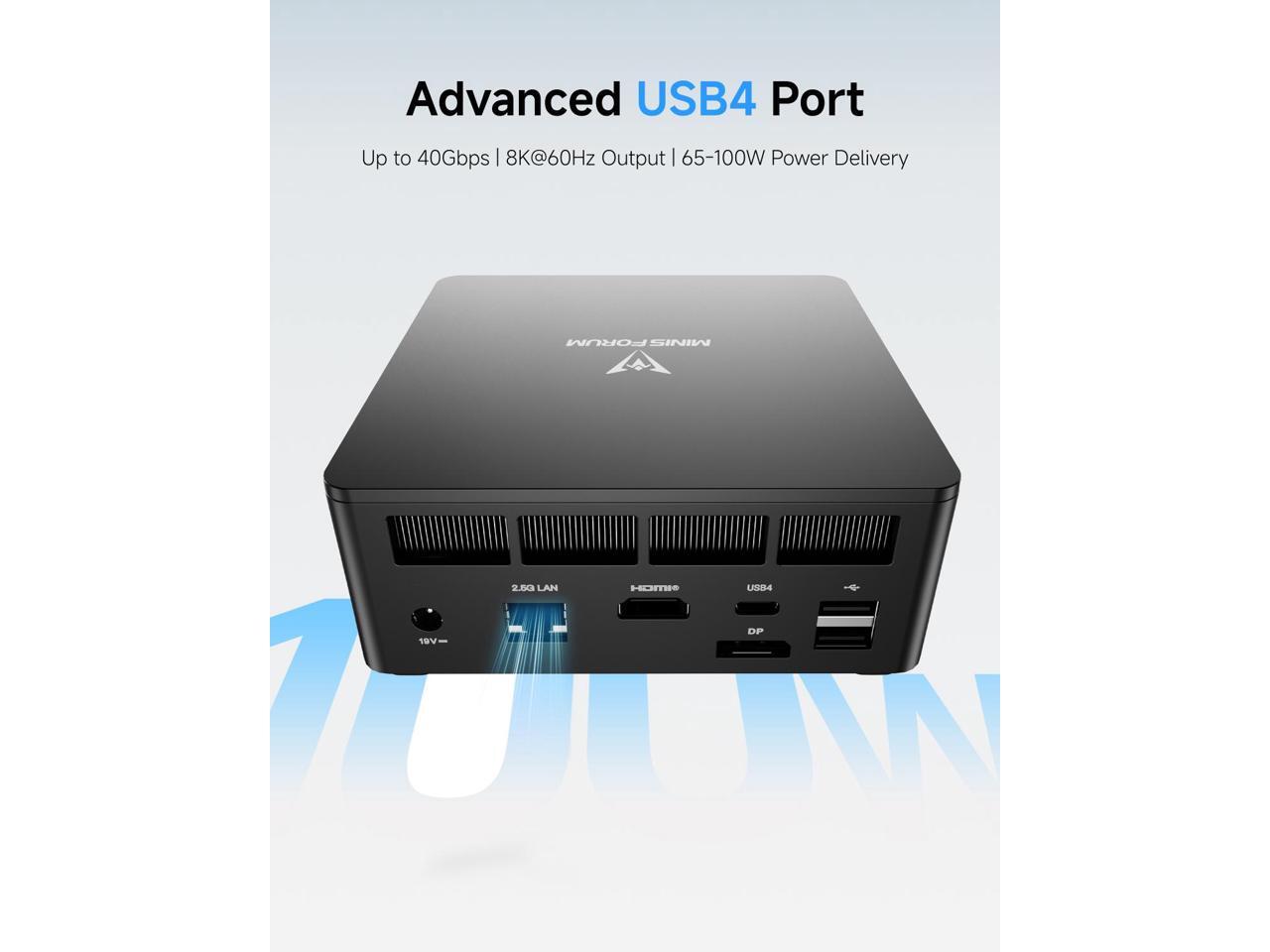 - Expandable Storage:This Mini PC comes with 1x HDMI2.1 Port, 1x USB4 Port, 1x DP1.4 Port, 2x USB3.2 Port, 2x USB2.0 Port, 1x 2.5G Lan Port, 1x 3.5mm audio jack, 2x DDR5 SODIMM Slot, 1x M.2 2280 PCIe4.0 SSD Slot