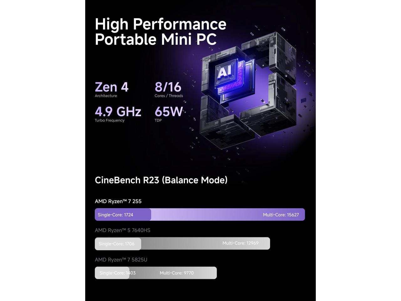 - High Performance Processor: The X1-255 Mini PC has an AMD Ryzen 7 255 with 8 cores and 16 threads, perfect for multitasking and light gaming.