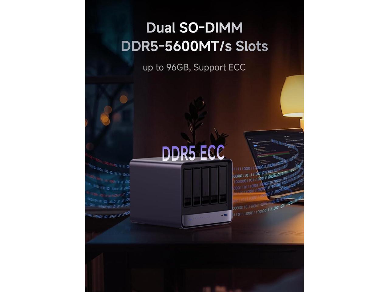 - ECC Memory Support for Enhanced Reliability: It has two DDR5 SODIMM (5600MT/s) slots, supporting ECC memory for NAS. Expandable up to 96GB, it ensures data integrity with error correction.