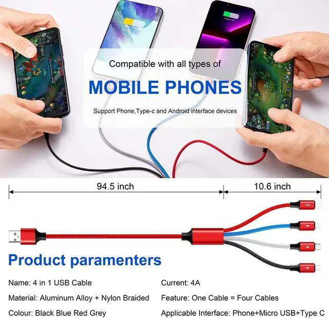 ![Multi Charging Cable 3.5A, [2Pack 6Ft] 4 in 1 Multiple Charging Cord Braided Multi USB Cable Adap...](http://c1.neweggimages.com/sellingpilot/modules/product/a-plus/87ce3ee34d158cdc2d56e72dc500f61ef6ceca325b3f329723868a433a3a82bd.jpg)