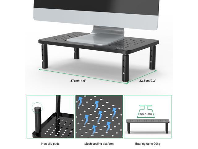 Minthouz Monitor Stand Riser 14 x 9 inch., with Vented Metal 3 Height Adjustable Monitor Stand for Computer, Laptop, iMac, PC, Printer, Desktop Ergonomic Monitor Riser Stand with Non-Skid Rubber