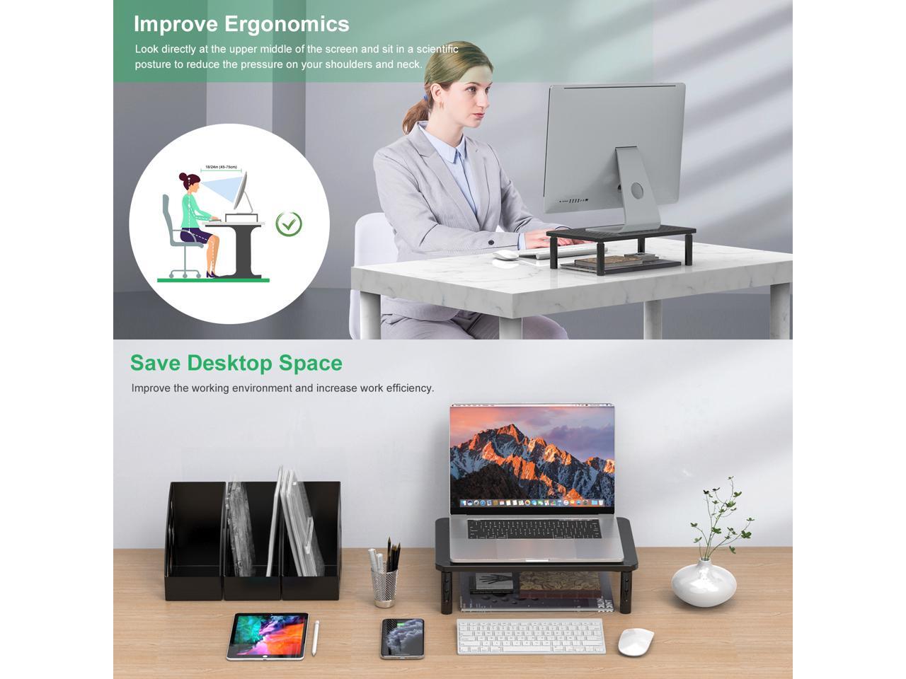 - Computer stand can save space on your desk and keep it tidy