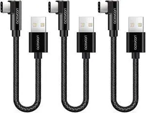 3 Pack 90 Degree USB C Cable 0.6ft Short Right Angle Type C Charger Braided USBC to USB A 20cm Charging and Data Sync Cord Compatible for S10 S9 S8 P40 P30 P20 Mate 30/20 Pixel