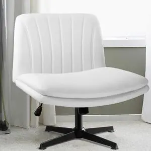 LEMBERI PU Leather Armless Office Desk Chair No Wheels,Criss Cross Legged Wide Padded Seat Swivel Vanity Chair,120°Rocking Mid Back Ergonomic Computer Task Chair for Make Up,Small Space