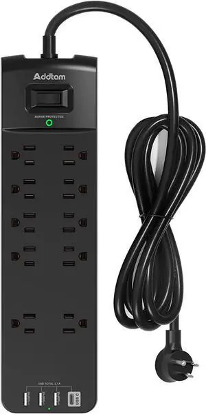 Power Strip - Addtam Surge Protector with 10 Outlets and 4 USB Ports, 6 Feet Extension Cord with Flat Plug, 2700 Joules, ETL Listed, Black