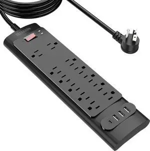 HITRENDS Surge Protector Power Strip - Flat Plug Extension Cord with 12 Outlets and 3 USB Ports & 1 USB-C Port (5V/3A), 6 Feet Power Cord, Spaced Outlets & ETL Listed Power Outlet for Home Office