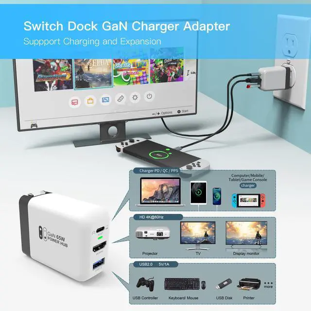 Introducing the Mirabox Portable Switch Dock Charger - The Ultimate Companion for Your Nintendo Switch! Are you tired of carrying bulky chargers and adapters for your Nintendo Switch? Look no further! The Mirabox Portable Switch Dock Charger is here to revolutionize your gaming experience. Designed with the gaming enthusiasts in mind, our Switch Dock Charger is packed with all the features and benefits that you've been looking for. Let's dive into what makes it the must-have accessory for every Nintendo Switch owner. Portability meets Power: With its portable design, our Switch Dock Charger is perfect for travel. Whether you are on a road trip or heading to a friend's place for a gaming marathon, this compact-sized charger is your go-to solution. No more lugging around heavy chargers - simply slip it into your bag or pocket and you're good to go! Unleash the Stunning 4K@60Hz HDMI Output: Experience gaming like never before! Our Switch Dock Charger supports a high-definition 4K@60Hz HDMI output for TV mode. Immerse yourself in crisp visuals and vibrant colors on the big screen. Enjoy your favorite games, movies, and shows in true cinematic glory! Fast Charging for Non-Stop Gaming: Never let a low battery ruin your gaming session again. Equipped with a USB-C PD fast charging port, our Switch Dock Charger ensures that your Nintendo Switch gets juiced up in no time. Say goodbye to long charging times and hello to endless hours of uninterrupted gaming pleasure. Smart Protection at Your Fingertips: Safety is our top priority. The Mirabox Portable Switch Dock Charger comes with built-in protection against overcurrent, overheating, and overvoltage. Game with peace of mind, knowing that your beloved Nintendo Switch is safeguarded from potential damage. Convenience in Every Detail: We understand the importance of convenience in gaming accessories. That's why our Switch Dock Charger includes a USB-C to USB-C cable, eliminating the need for additional cables or adapters