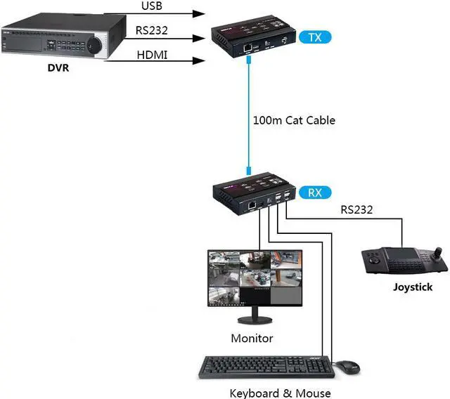 Transmission distance:Point to Point: CAT5e 100m/CAT6 100m