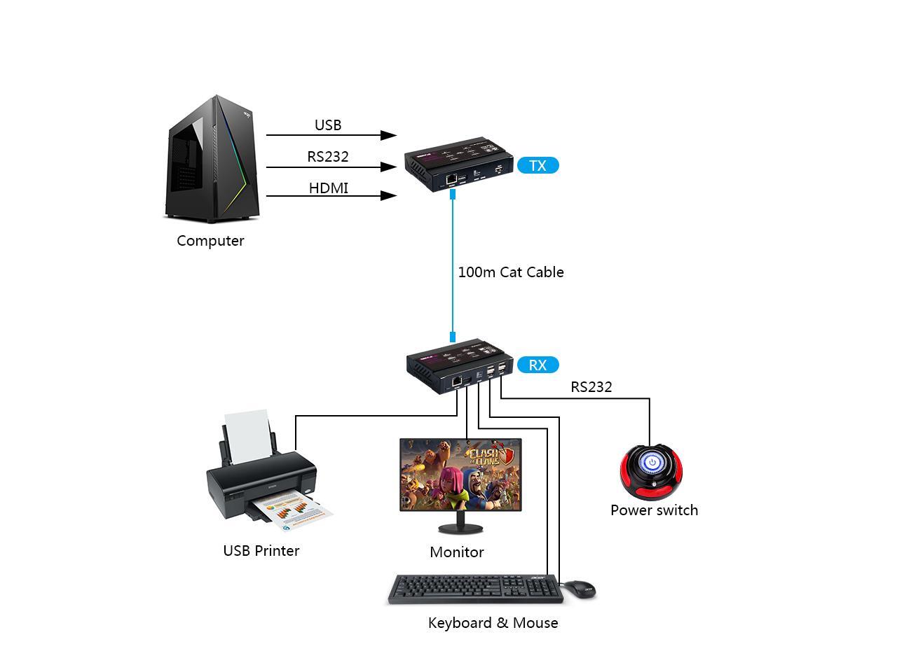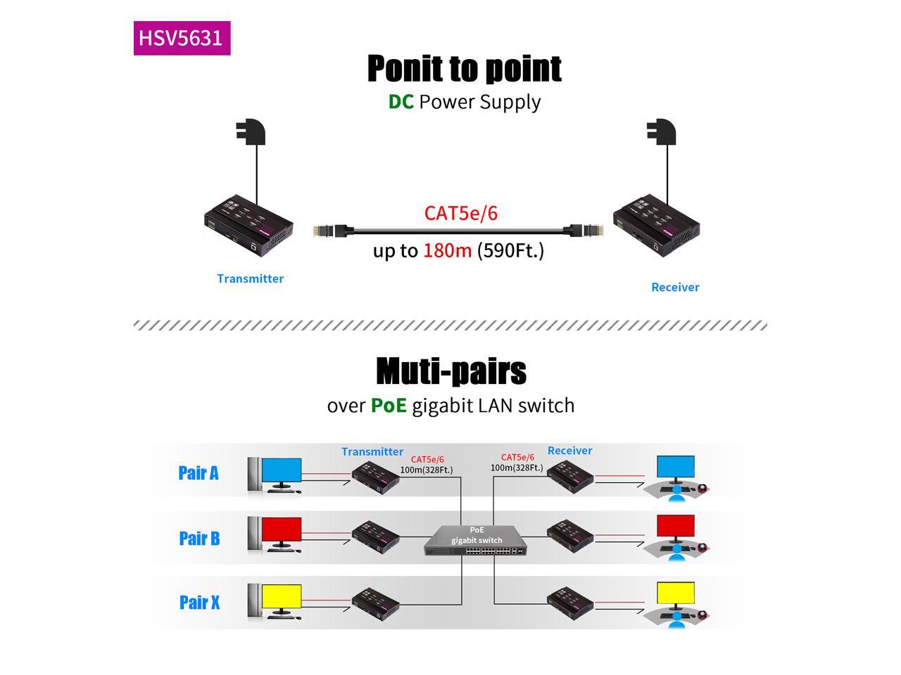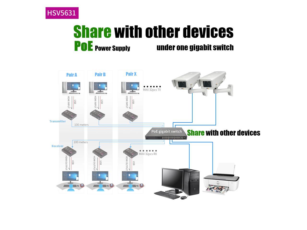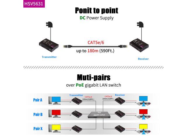 MiraBox HDMI KVM Extender -HSV5631 4K@30Hz 4:4:4 with USB2.0 Hub over Cat5e/6 Latency<50ms -Share Your Home Switch with Other Network Device