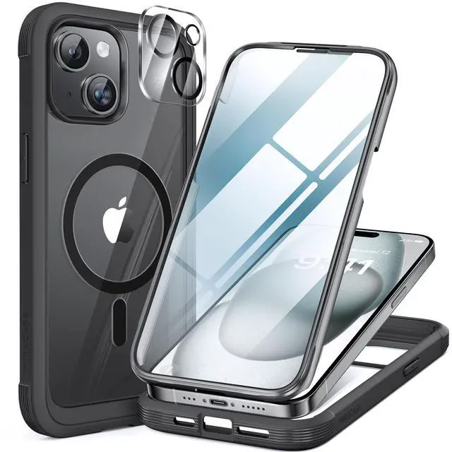 ![Alt view image 2 of 7 - Glass Series for iPhone 15 Case [Compatible with MagSafe] Full-Body Magnetic Bumper Case with Built-in 9H Tempered Glass Anti-Fingerprint Screen Protector + Camera Lens Protector, Black](https://c1.neweggimages.com/productimage/nb640/C5JMD26032203B0JC97.jpg)