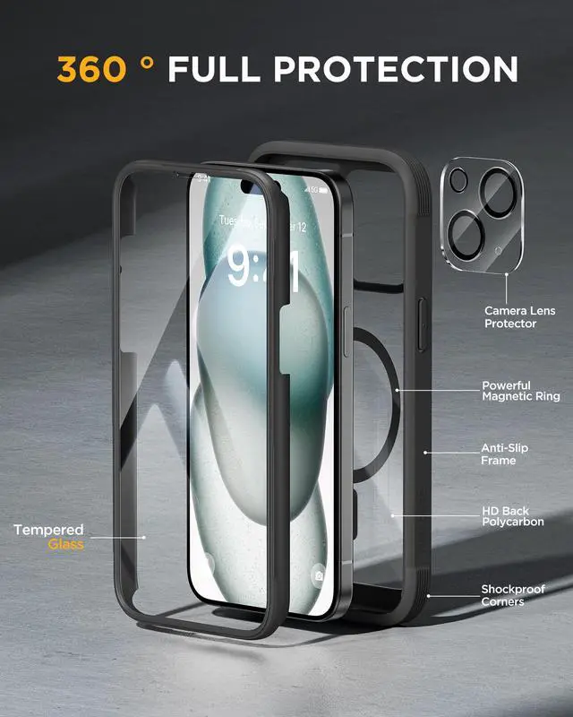 ![Main image of Glass Series for iPhone 15 Case [Compatible with MagSafe] Full-Body Magnetic Bumper Case with Built-in 9H Tempered Glass Anti-Fingerprint Screen Protector + Camera Lens Protector, Black](https://c1.neweggimages.com/productimage/nb640/C5JMD26032203B0GN31.jpg)
