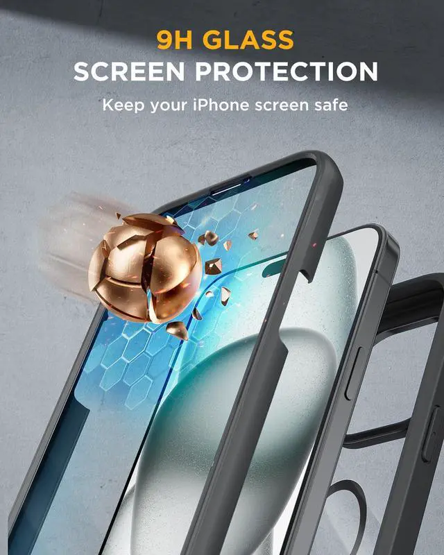 ![Alt view image 4 of 7 - Glass Series for iPhone 15 Case [Compatible with MagSafe] Full-Body Magnetic Bumper Case with Built-in 9H Tempered Glass Anti-Fingerprint Screen Protector + Camera Lens Protector, Black](https://c1.neweggimages.com/productimage/nb640/C5JMD26032203B0O56C.jpg)