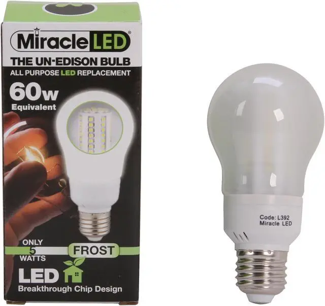 The MiracleLED 5w bulb is replacing a 60 watt incandescent household bulb.