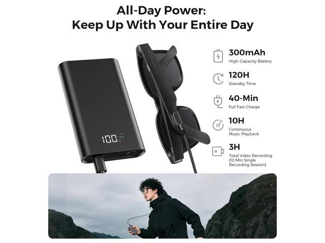 - Fast Charging & Extended Standby: A quick 70-minute charge via the magnetic port powers the glasses for up to 15 hours of music playback, 12 hours of standby, or 1 hour of continuous video recording, keeping you powered through your day.