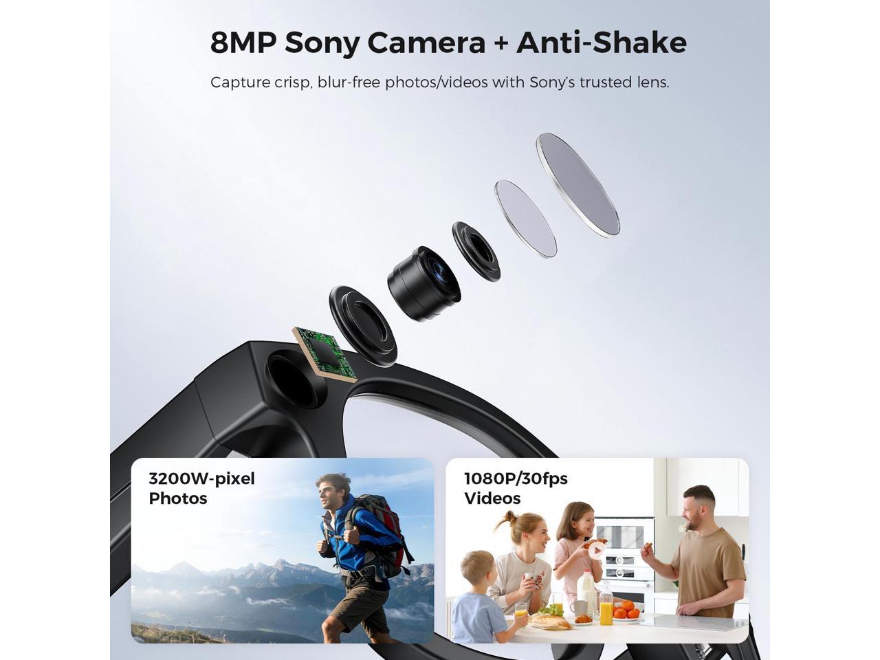 - Capture Life Hands-Free in 1080P: Never miss a moment. With an 800W camera and software anti-shake, you can effortlessly record stable, high-definition 1080P video or take 20MP photos on the go, for up to an hour of continuous recording.