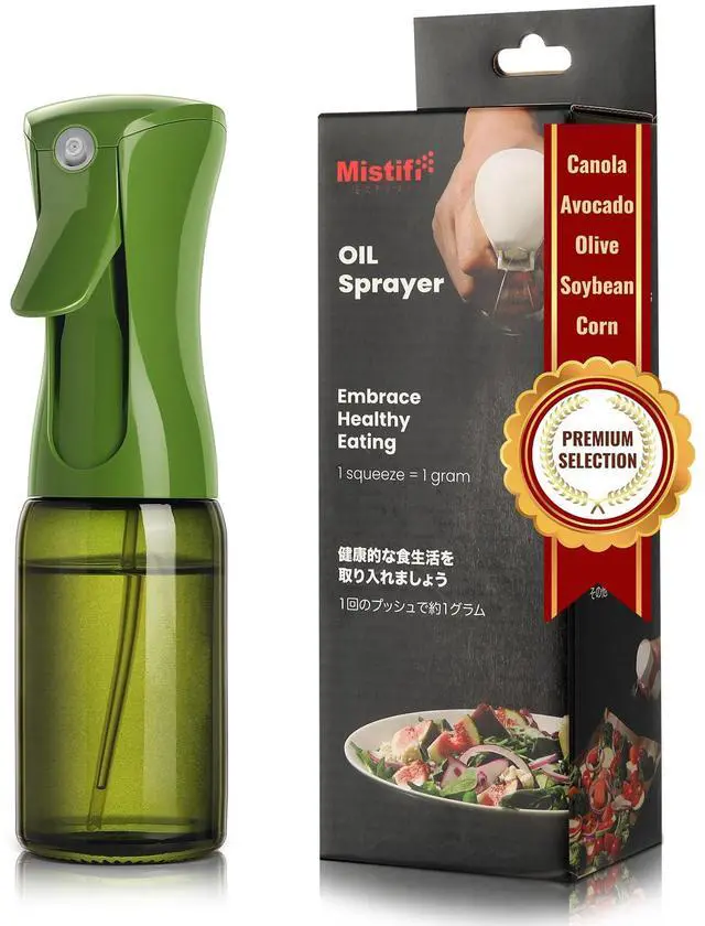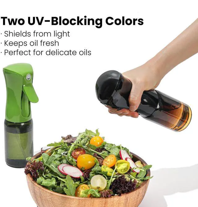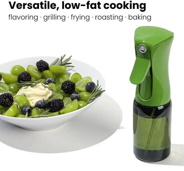 Balanced Spraying for Healthier Cooking -- Each full press releases approximately 1g (0.04oz) of oil, helping you control portions and reduce calorie intake without compromising on flavor. Perfect for air frying, grilling, roasting, baking, and salad dressing.
