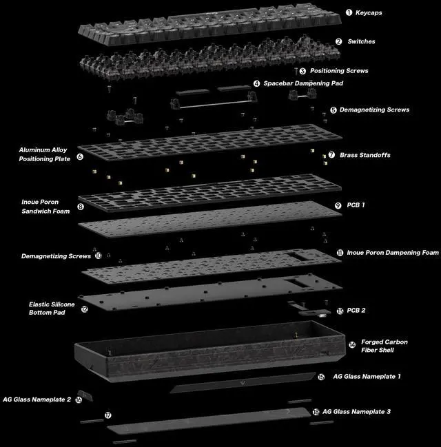 The WLMOUSE Ying75 keyboard uses custom Gateron Nightfall and TTC Shadow magnetic switches. These switches use magnets and sensors instead of physical contacts to process actuations, creating a much smoother keypress without bounce or chatter. The adjustable actuation point is determined not by location but by distance travelled.