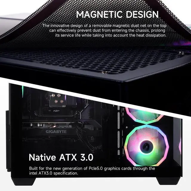 Cooler & Power:RGB colorful air cooling PC & 7 ARGB System Color Adjustable Ring Fans 600W 80+ Bronze Certified Power Supply.