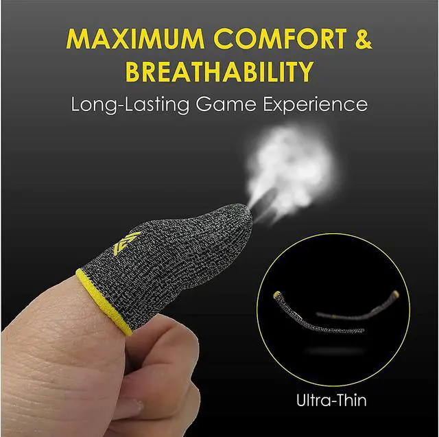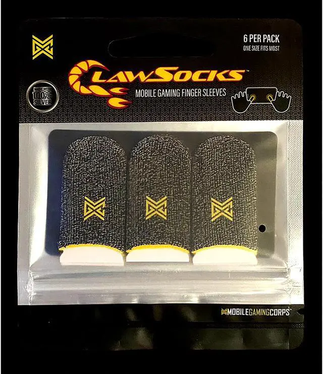 | Features | Upgrade your touch controls with ClawSocks - the premium finger sleeves that instantly improve your mobile gaming consistency, precision and performance! We've perfected the finger sleeve formula with our 18-needle Nylon and Spandex weave that's incredibly thin, breathable and durable. We use a generous amount of 100% REAL SILVER thread - the most conductive metal on Earth - for maximum touch response and sensitivity. We finish each sleeve with precision stitching for a seamless feel. They're simply the best mobile gaming finger sleeves ever created. Features: 100% silver thread for the highest conductivity Enhanced touch control and precision Consistent in-game movement and precision Thin, soft and comfortable stretch High-density weave for lasting performance Combats humidity, sweat, dirt and oil Compatible with all touchscreen devices Package of 6 ClawSocks |