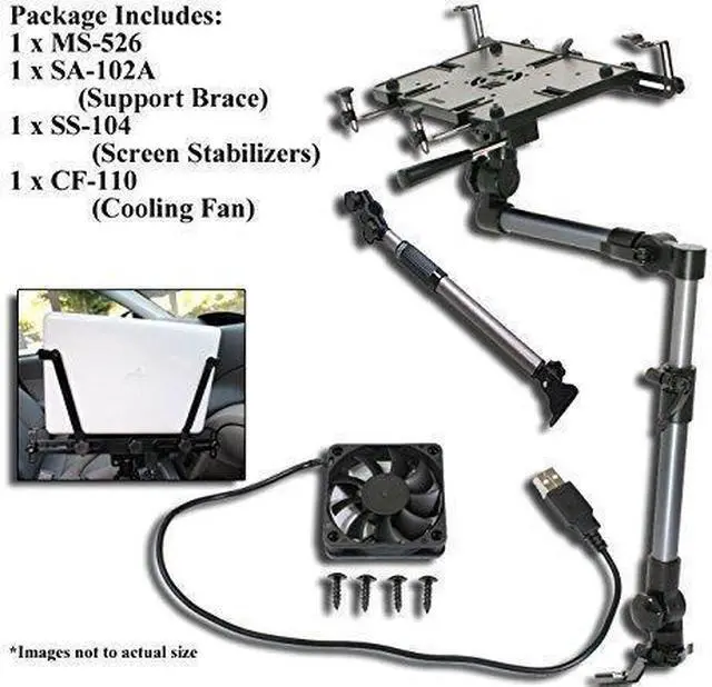 This Super Deal Includes Our Best Selling MS-526 Stand, its SA-102A Supporting Brace, Screen Stabilizers and USB Cooling Fan!