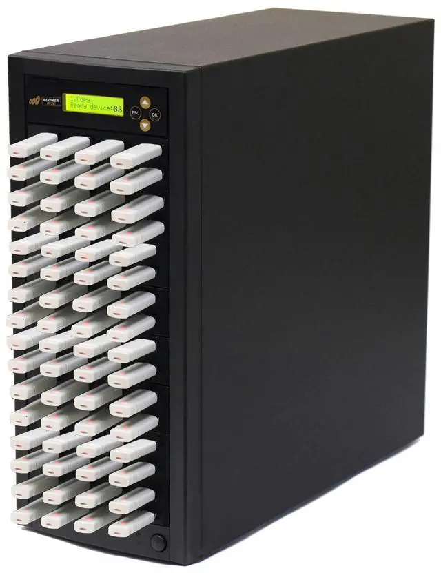 The Acumen Disc USB Duplicator is a high speed, stand-alone, hardware based USB Flash Memory Duplicator capable of copying the contents from any USB Memory Card to up to 63 other USB Flash memory cards