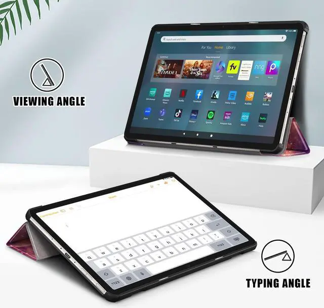 Folding cover transforms the case to be a stand with two comfortable viewing angles: Watching/view angle and typing angle.