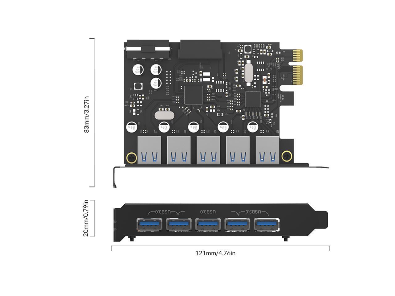 ORICO Monster USB 3.0 PCI - Express Card with 5 Rear USB 3.0 Ports and 1x Internal USB 3.0 20-PIN Connector Controller Adapter Card (PVU3-502I)