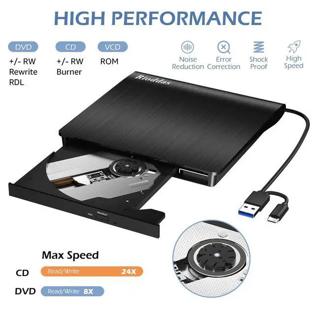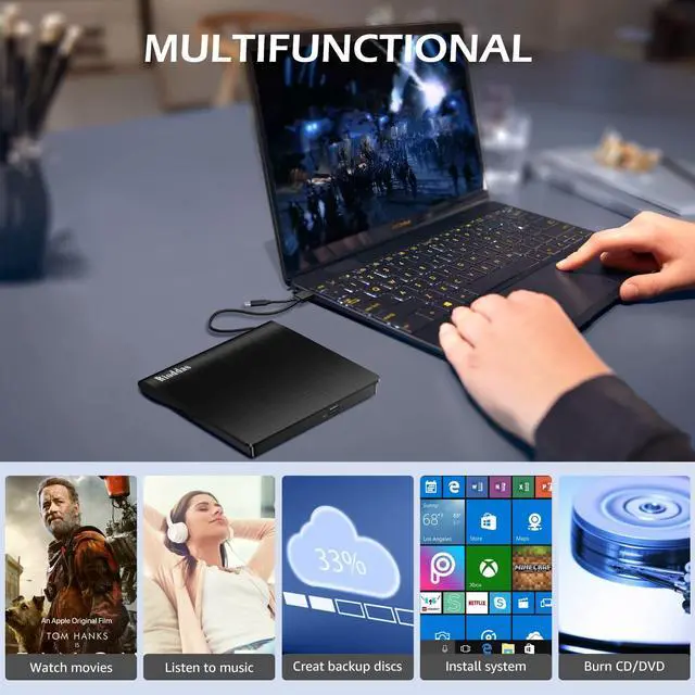 Disk Duplicator External DVD Drive USB 3.0 Type C Portable CD DVD +/-RW Optical Drive Player DVD/CD ROM Burner Reader Writer Compatible with Laptop Desktop PC Windows Linux OS Apple Mac MacBook