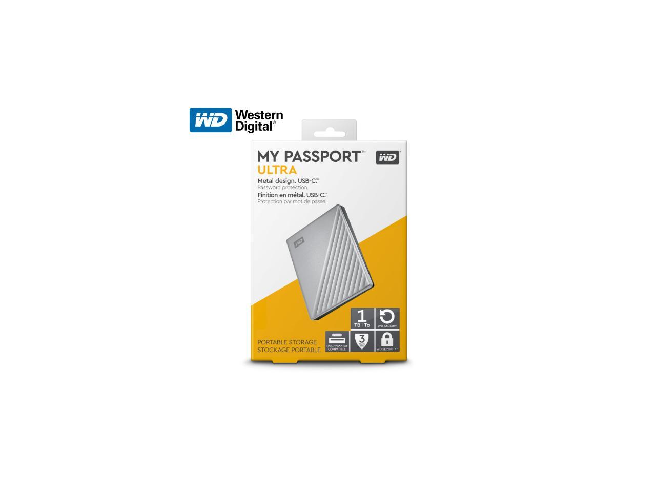 WD 1TB Silver My Passport Ultra Portable Storage External Hard Drive USB-C for PC/Windows (WDBC3C0010BSL-WESN)