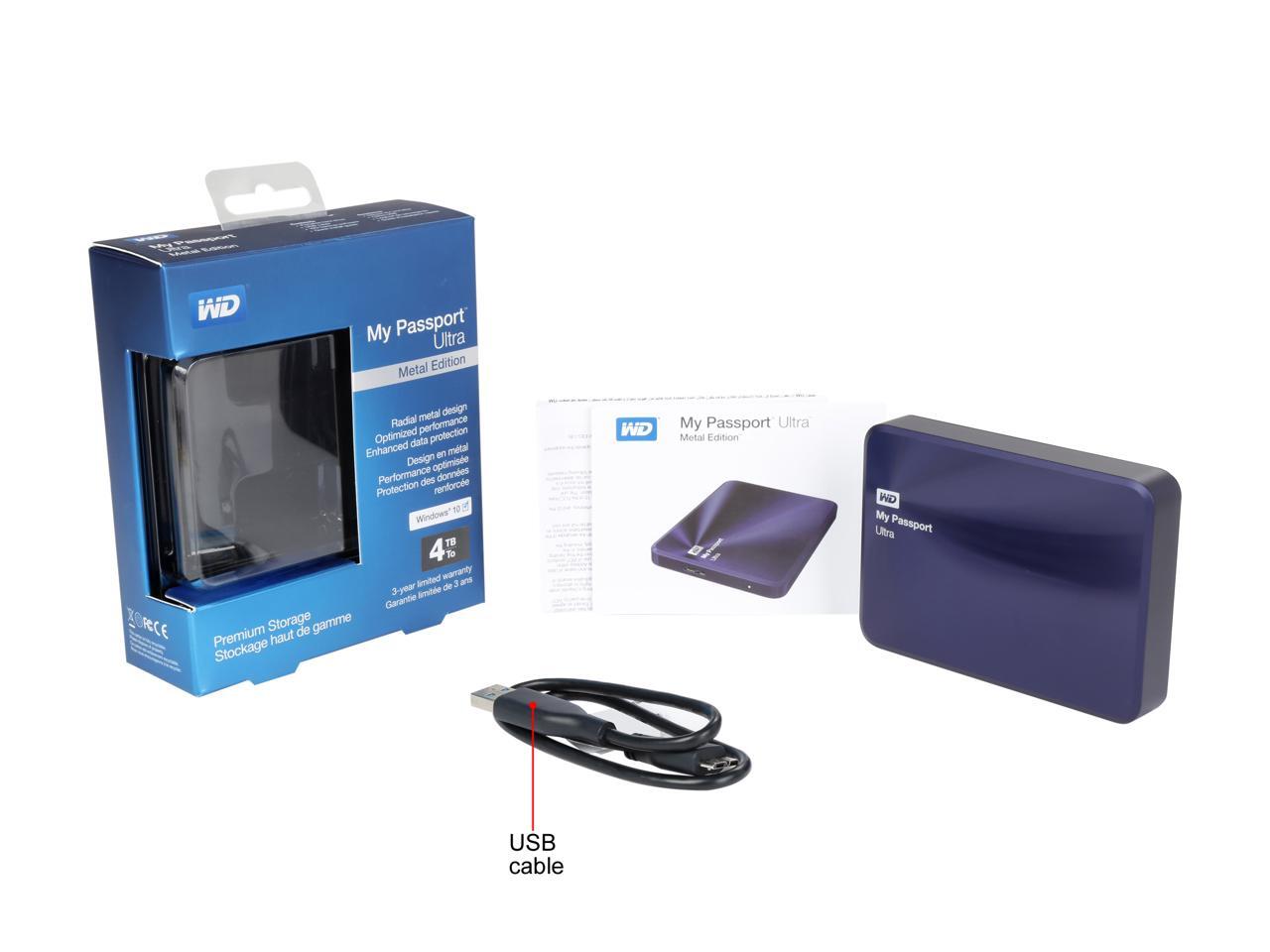 WD 4TB My Passport Ultra Metal Edition Hard Drives - Portable External USB 3.0 Model WDBEZW0040BBA-NESN Navy
