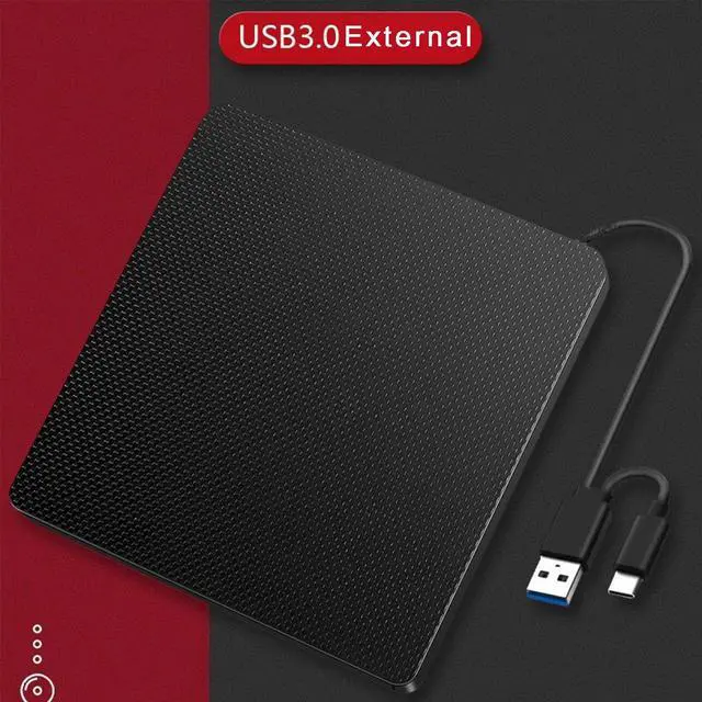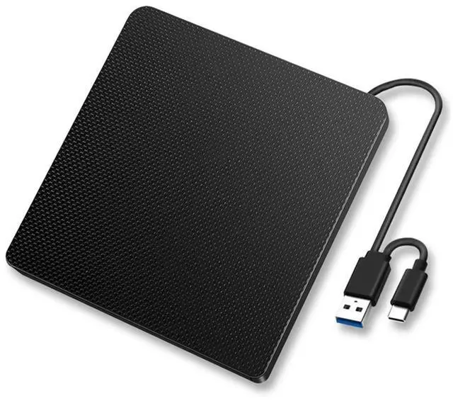 External CD DVD Drive for laptop, USB3.0 and USB-C 2 in 1 Portable DVD Player CD Burner Reader Writer for Desktop PC Windows 11/10/8/7 Linux Mac OS, Black