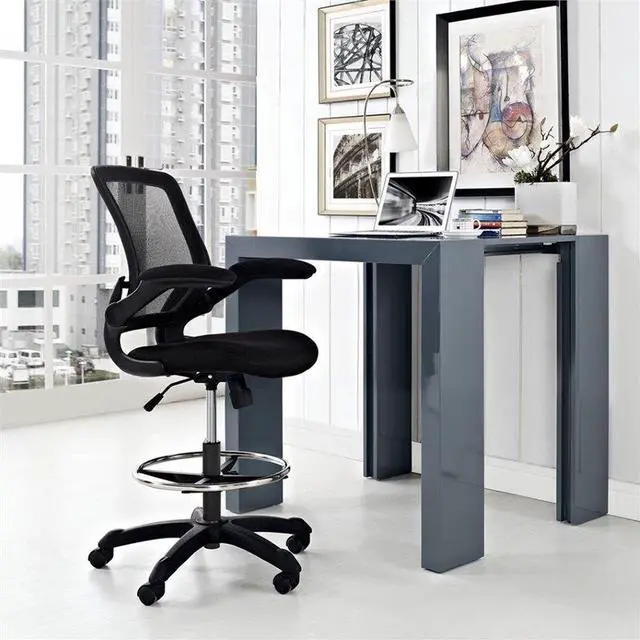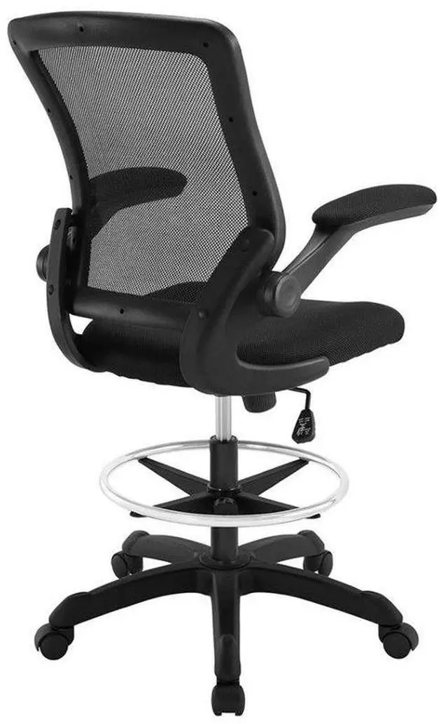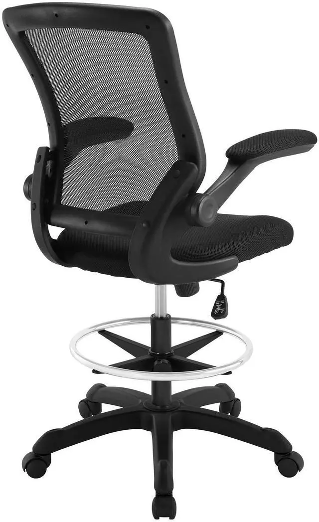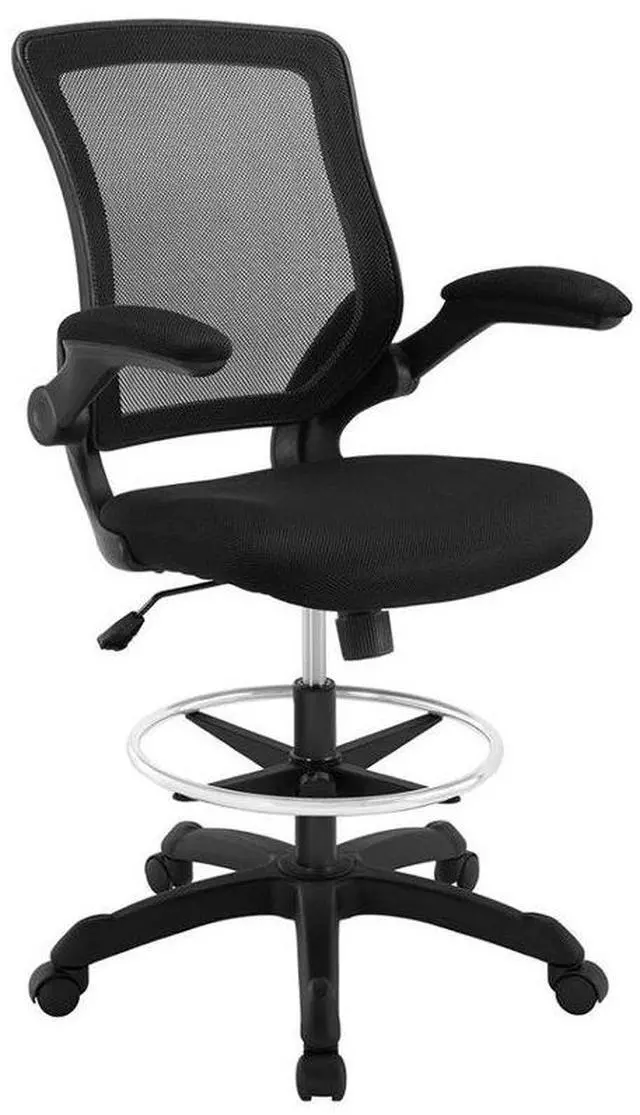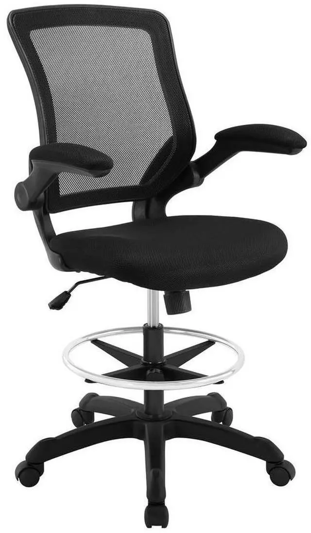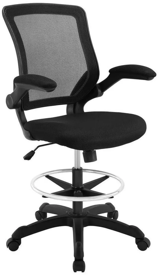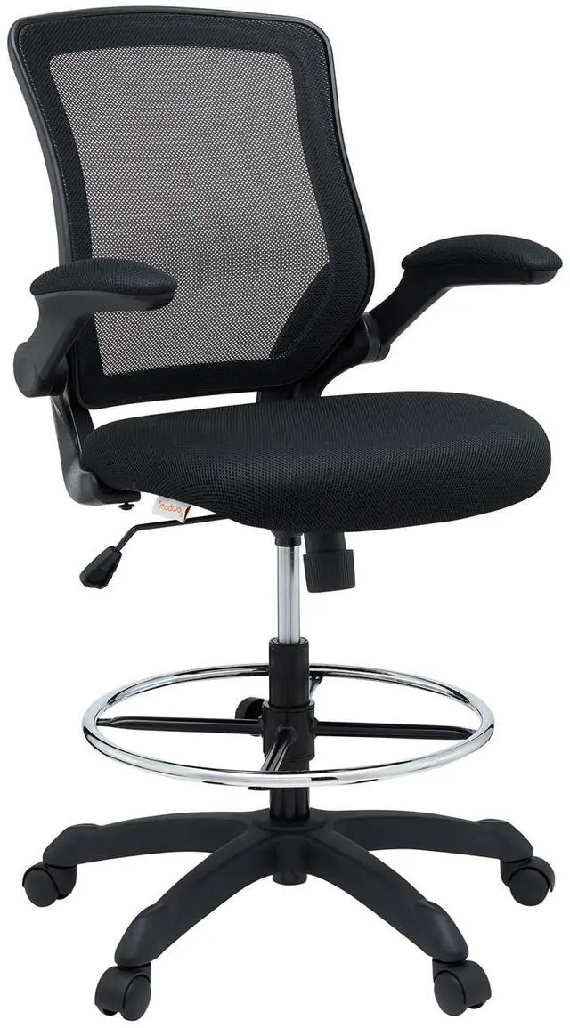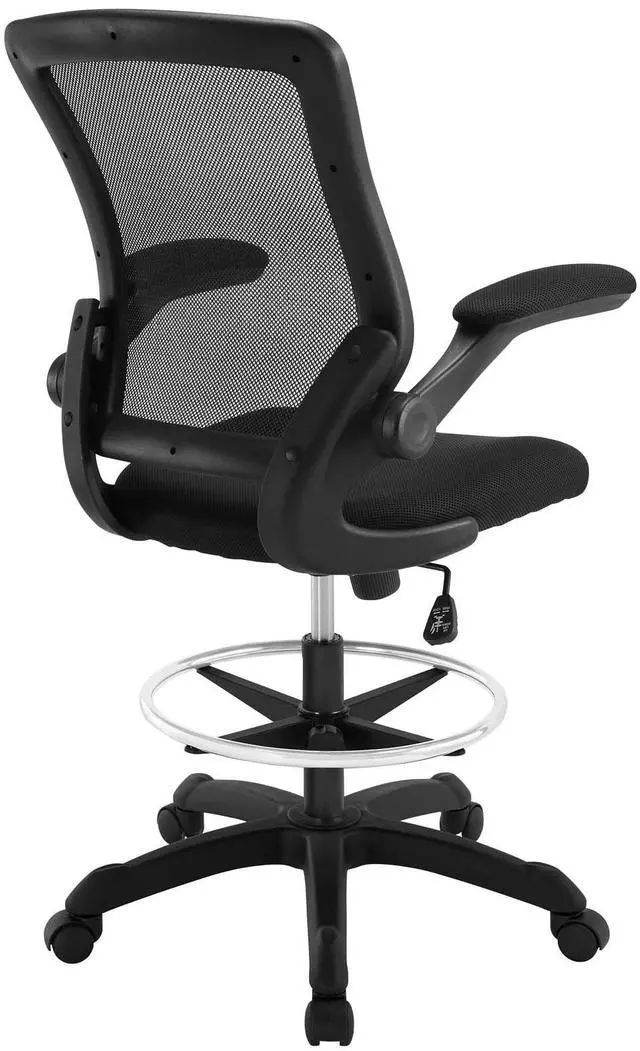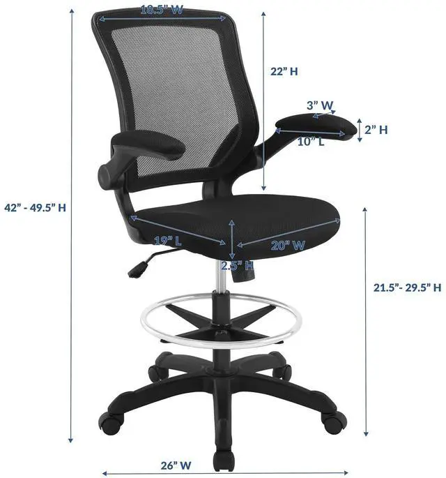 Chart new territory while seated from the comfort of the Veer Drafting Stool. Veer features a form-fitted breathable mesh back and padded waterfall mesh seat to keep your back and thighs posture perfect. Easily adjust the height of Veer's arms to match your seating position and height. Securely lock your back in place with a user friendly seat tilt plus tension control knob--perfect for adjusting the chair to correctly fit your body weight. Adjust the seat height with a one-touch pneumatic lift with hooded dual-wheel casters to ensure effortless gliding over carpeted offices. Complete with a foot ring and extra tall gas cylinder, Veer is a drafting stool built for the progressive minded. The Veer Drafting Stool is perfect for school, work, or home use.