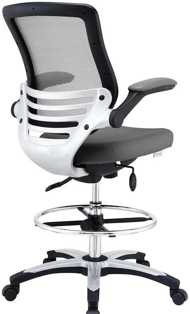 One - Edge Office Drafting Chair with Foot Ring, Mesh Back and Black Leatherette Seat