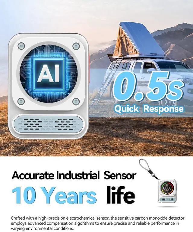 Accurate Detection for Your Safety: Featuring high-precision electrochemical sensor with 10-year lifespan, sensitive carbon monoxide detector employs advanced compensation algorithms with 0.5s response. It ensures precise yet real-time monitoring of CO, temperature and humidity. Readings are clearly displayed on digital LCD screen that has 3 brightness levels for suitable visibility in both sunlight and darkness. Amazing mini device helps you stay protected from hidden hazard