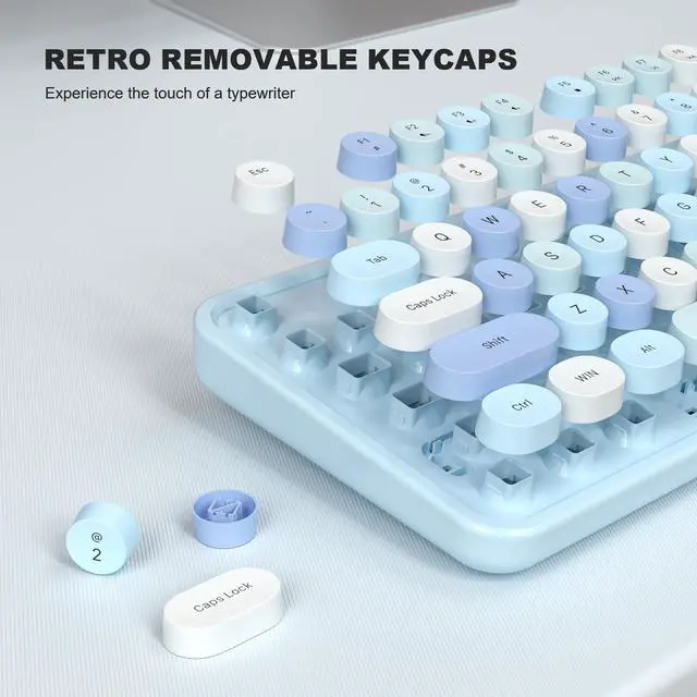 The keyboard features retro round keycaps design, providing a unique typewriter feel with every keystroke.