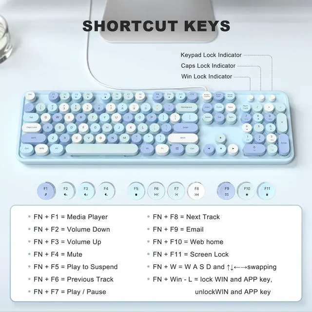 MOFII Full-Size Blue Colorful Wired Keyboard