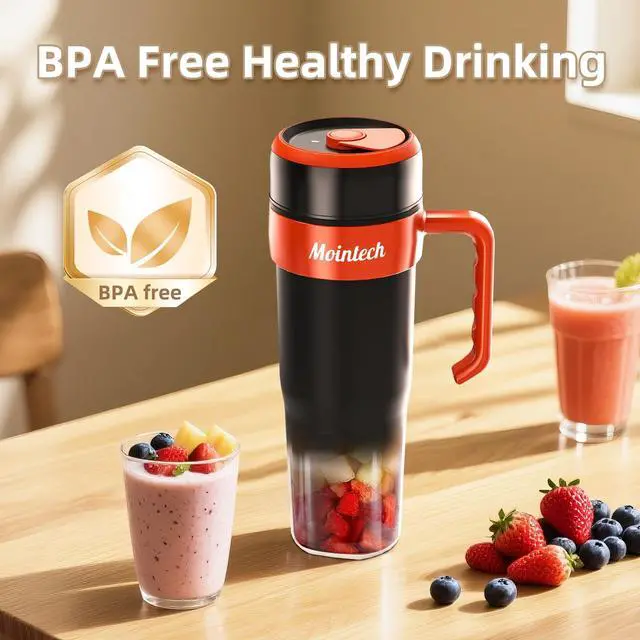 Portable DesignDesigned with portability in mind, the ergonomic red handle offers a comfortable grip, making it easy to carry around. You can blend your drink at home, then simply attach the lid and take it with you to work, the gym, or while traveling