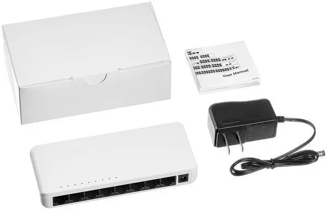 This network switch include 8 port gigabit ethernet, 10/100/1000Mbps adaptive, compliant with IEEE 802.3, IEEE 802.3u, IEEE802.3x ethernet standards
