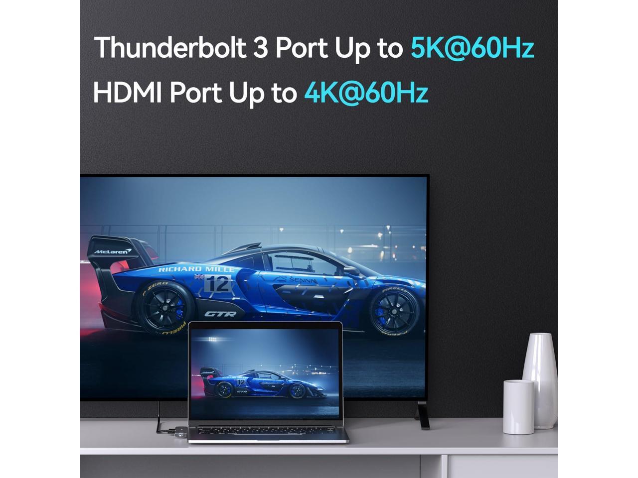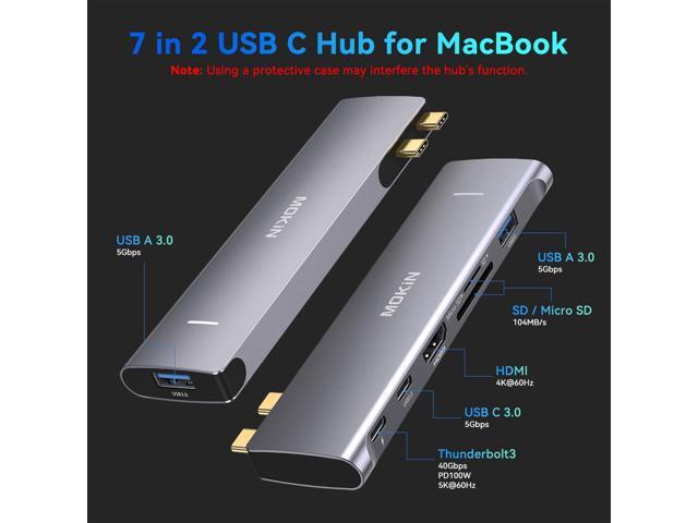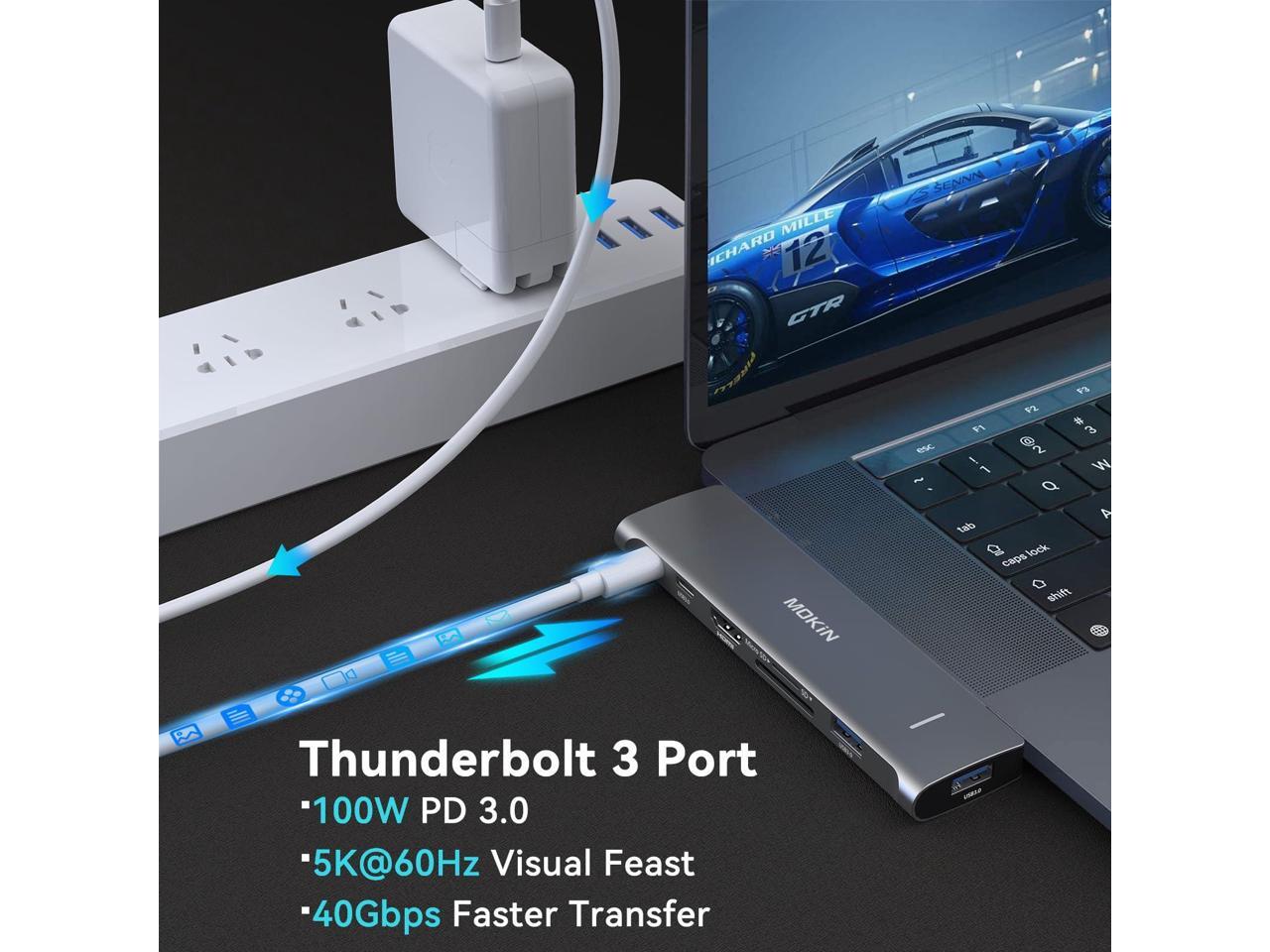- Multi-Function Thunderbolt 3: Mac Dongle with a thunderbolt 3 supports data transfer up to 40Gb/s, up to 5K displays, up to 100W power. Another usb c port is only for data transfer, speed usb 2.0.