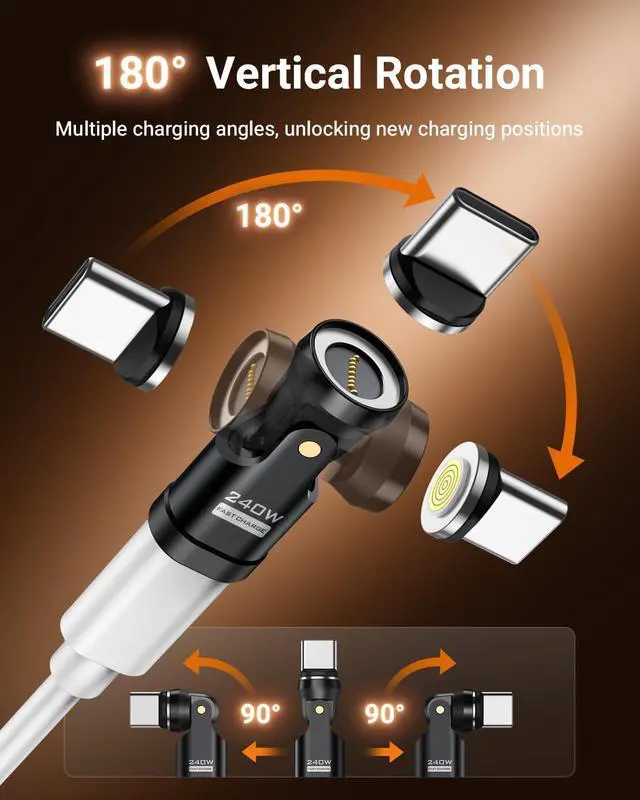 | PD 240W, 180°+360° Rotating | PD 240W, 180°+360° Rotating | PD 240W, 180°+360° Rotating | PD 240W, 180°+360° Rotating | Line Control, Audio Function | PD 240W, 180°+360° Rotating | Anti-lost Loop, Dual Chips |