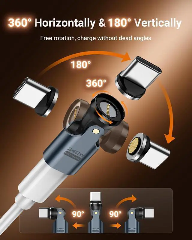 | PD 240W, 180°+360° Rotating | PD 240W, 180°+360° Rotating | PD 240W, 180°+360° Rotating | PD 240W, 180°+360° Rotating | Line Control, Audio Function | PD 240W, 180°+360° Rotating | Anti-lost Loop, Dual Chips |