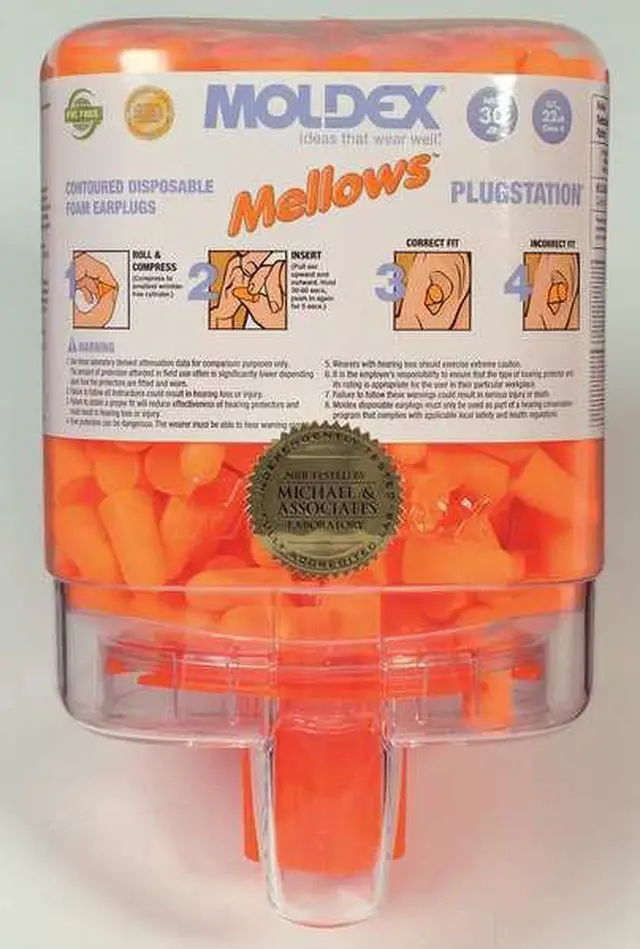 Ear Plugs with Dispenser, Product Type Dispenser with Refill, Noise Reduction Rating 30 dB, Insertion Method Roll-Down, Reusability Disposable, Earplug Shape Bell, Earplug Color Orange, Cord Options Uncorded, Earplug Size M, Capacity - Pairs of Earplugs 250 Pairs, Metal Detectable No, Earplug Material Foam, Earplug Packaging Bulk Box, Earplug Pair Pack Type Loose, Standards ANSI S 3.19 -1974, For Use With Ear Plugs, Includes Hardware, Mounting Bracket. This item has been restricted from sale in the following state (s): []