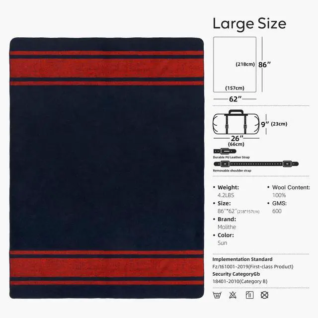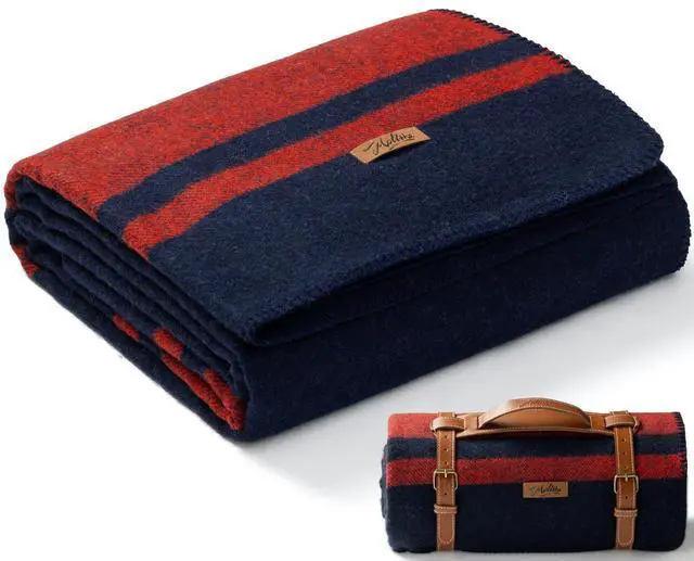 - The heavy wool blanket is bordered with thicker yarn to prevent edge seam wear. This ensures high quality and a long lifespan, making it look at home in the woods or on the couch. Wool is a natural flame retardant material.